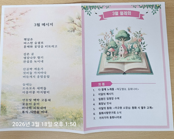 26년 3월 월례회 이규원소장님께서 옛날옛적 동화시